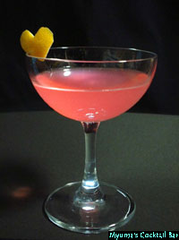 ロックグラスの方は、ジン+ローズシロップ+アップルジュース。ミニバラを添えて。