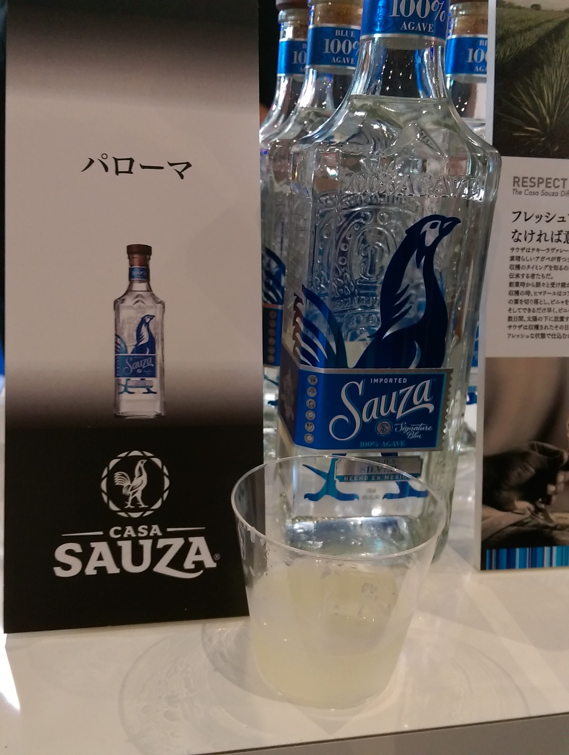 サウザSAUZAのブースに捕まってしまい、テキーラ3種飲み比べから始まった。